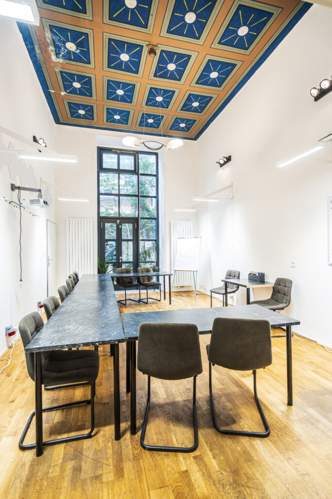 Pronajměte si VELKOU ZASEDACÍ MÍSTNOST na realizaci vašeho školení, MEETUP SPACE na soukromou schůzku s obchodními partnery, SALÓNEK V PATŘE na přímou práci s klientem anebo rovnou celý EVENT PLACE na oslavu, tiskovou konferenci anebo třeba vernisáž!